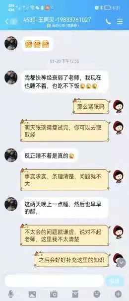 “没关系,笔试那么多人都打败了,复试不叫事儿。”“老师觉得你没问题,你获得的荣誉这么多,研究生学校肯定喜欢。”“分数低一点没关系,一志愿去不了,调剂也可以调剂到好学校。”……传经送宝之余,各学院也关注学生心理压力的疏导。毕业班辅导员发挥特长,一边通过QQ、微信等开展线上心理咨询和情绪疏导,为同学们调整复试心态,一边深入宿舍,送去水果、零食、文具,促膝谈心,及时缓解备考压力,鼓励学生勇敢克服疫情带来的各种困难与挑战,以自信姿态迎接复试。这些暖心的举动,成了考研学子的心灵加油站。