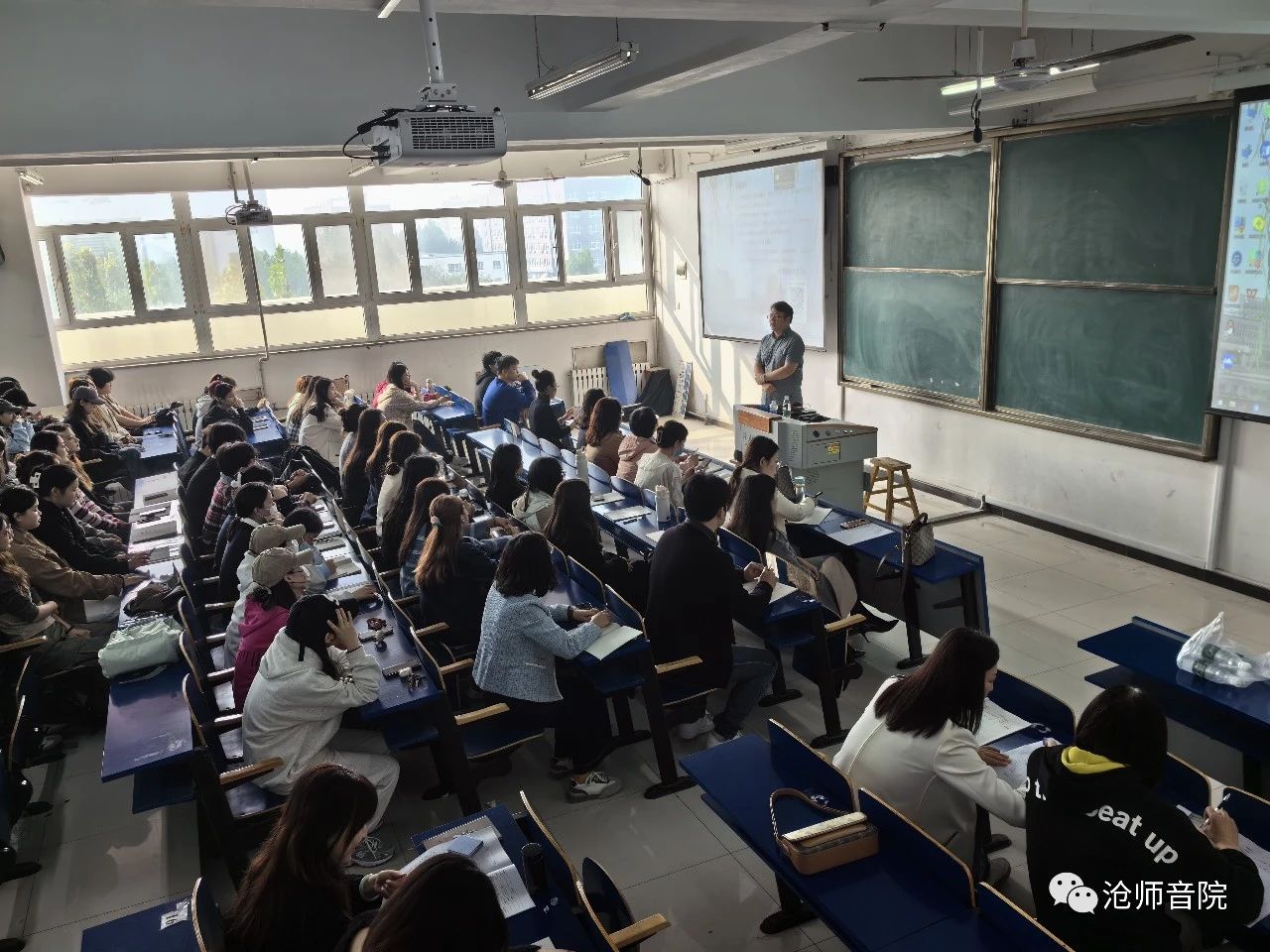 为进一步深化与基础教育合作,落实音乐学专业人才培养方案,提高专业人才培养质量,为一线基础教育输送优秀的音乐教育人才。10月31日,音乐学院聘请沧州市第十七中学高梁巍老师于志伟艺术楼开展初中音乐教学理论与实践课程。音乐学院21级学生与全体教师参与了课程学习。高老师对音乐教师的职业规范、职业道德、职业发展和规划等进行深入分析,帮助学生了解音乐专业知识应用的各种方法。并让学生认识到“音乐教师”这一职业所肩负的责任与使命。