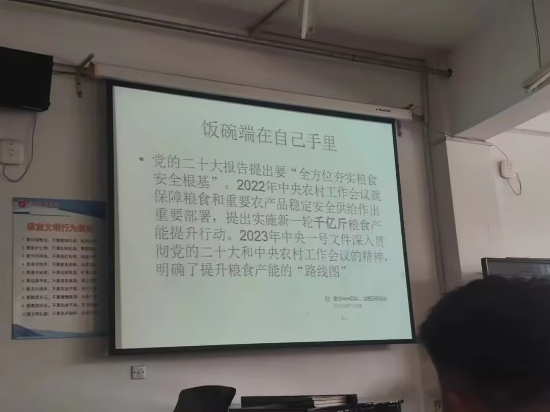 本次课程最后,刘朝华老师进行总结性发言表示当代青年应深刻重视国家粮食安全教育,并号召广大青年时刻牢记习近平总书记嘱托,共同发扬艰苦奋斗、勤俭节约的优良作风,坚定不移听党话、跟党走,怀抱梦想又脚踏实地,敢想敢为又善作善成,努力做“厉行节约,反对浪费"的倡导者、宣传者和践行者,为营造良好的社会新风尚贡献青春力量!