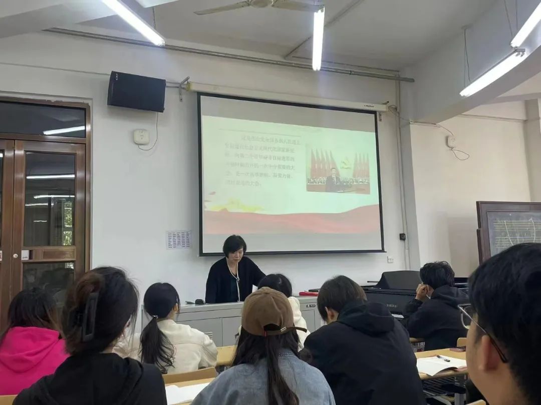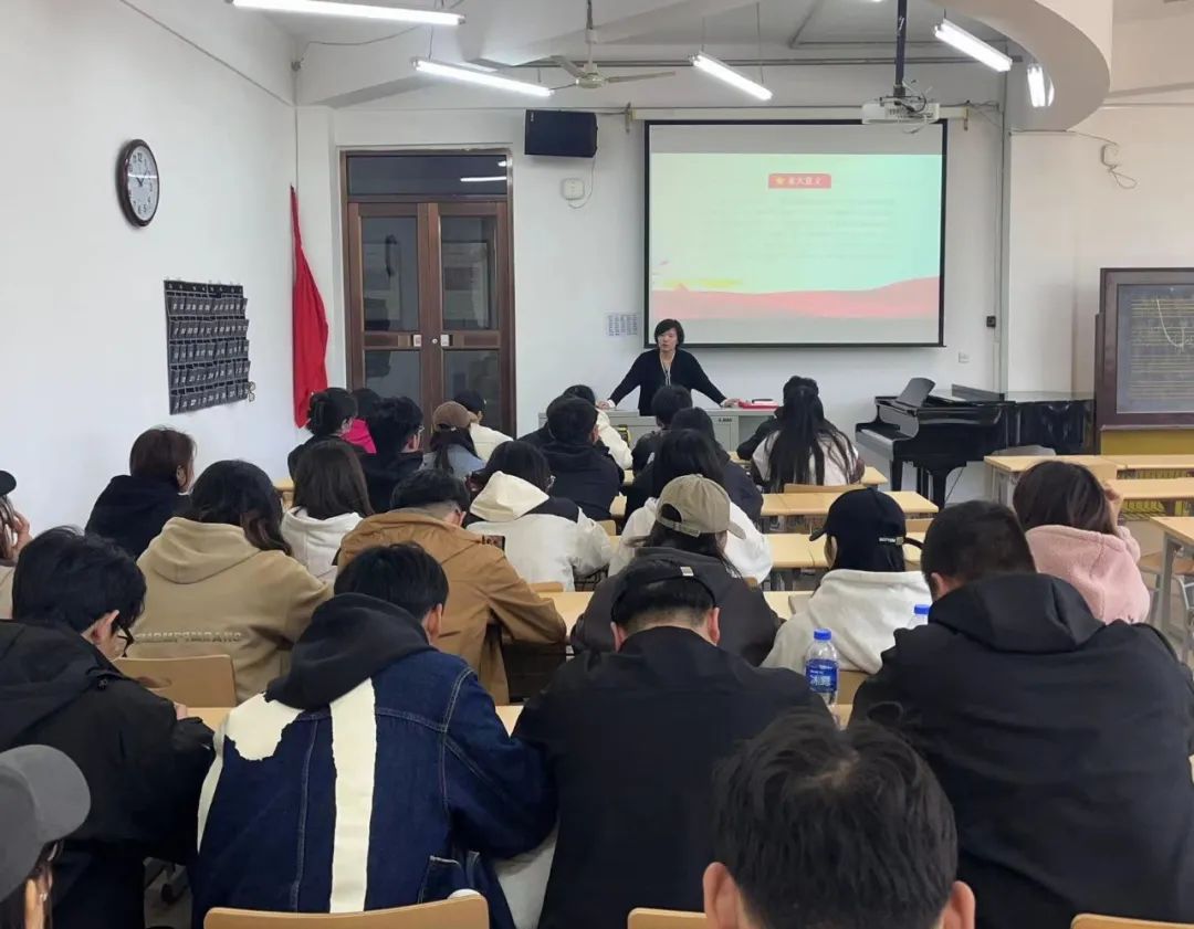 为深入开展学习贯彻习近平新时代中国特色社会主义思想,贯彻落实党的二十大精神,筑牢信仰之基,补足精神之钙。2023年10月20日,共青团沧州师范学院音乐系总支委员会组织开展学习关于“学思想、强党性、重实践、建新功”主题讲座。本次讲座特邀马克思主义学院佟立荣老师主讲,我系马克思主义学习小组全体成员参加。